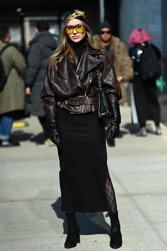 Cherry red is the color of the season. Incorporate this bold hue into your wardrobe with statement pieces like red ankle boots, a red leather jacket, or even a cherry red handbag. It's a color that demands attention and exudes confidence. Picture: PinterestLeather Everything: Edgy Elegance