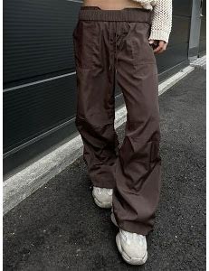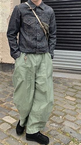 Both cargo/parachute pants give baggy look,Tbh just looks cool Can be paired with a fitted tee , crop top or even oversized tee Can be worn in different ways (high/low wasted)to give the illusion of that hourglass figure Forgives the chubby thigh daysLong sleeve black/white fitted shirt